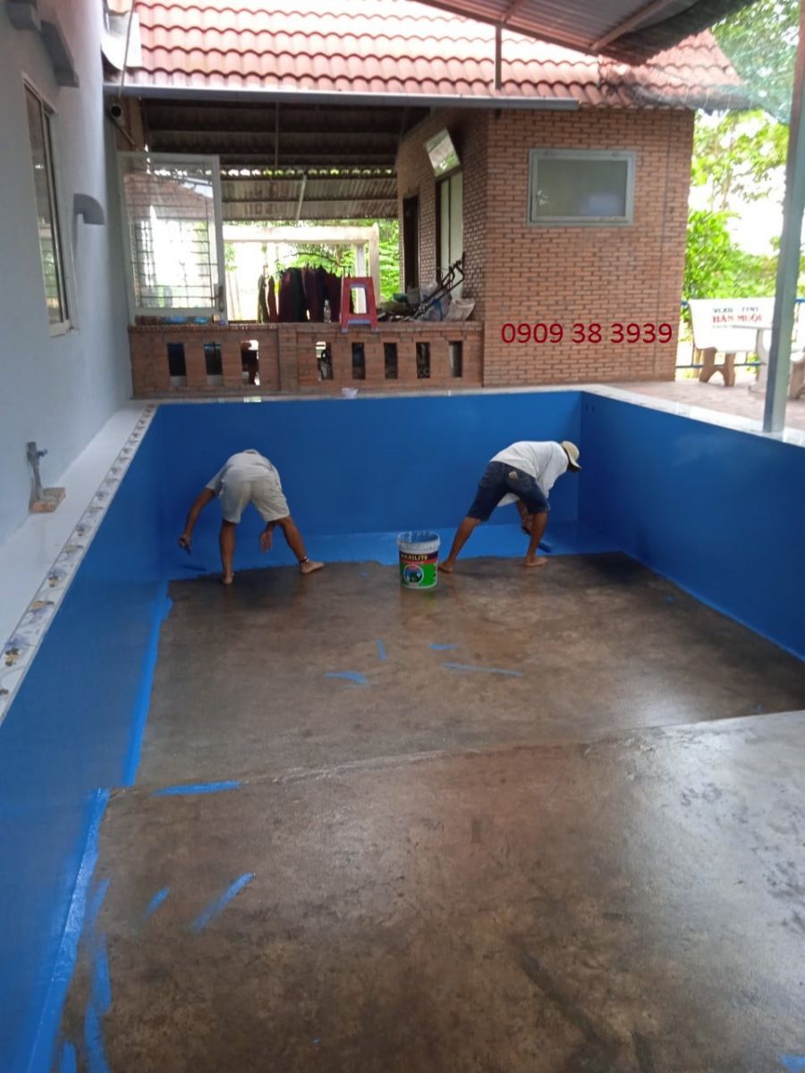 HÌNH ẢNH THI CÔNG BỂ BƠI VÀ SƠN EPOXY CHỐNG NGẤM DO HOÀNG GIA THỰC HIỆN TẠI TIỀN GIANG